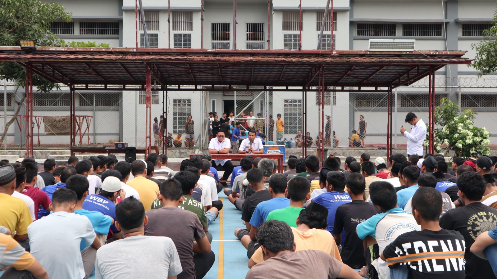 NASIONALNEWS.ID TANGERANG – Rumah Tahanan (Rutan) Kelas I Tangerang menggelar kegiatan sosialisasi kepada warga binaan sebagai bentuk penguatan pembinaan serta menjaga komunikasi yang baik antara petugas dan warga binaan (19/03). Kegiatan ini juga bertujuan untuk memberikan hiburan bagi warga binaan di tengah adanya perbaikan listrik yang sedang berlangsung di Rutan.