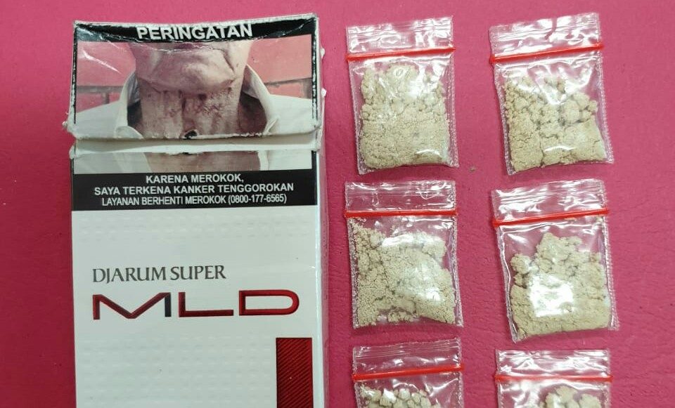 Setelah bertemu anggota langsung melakukan penangkapan serta penggeledahan, dan berhasil ditemukan barang bukti berupa enam paket plastik klip berisi heroin yang disimpan dalam bungkus rokok warna putih disimpan dikantong celana depan sebelah kanan.