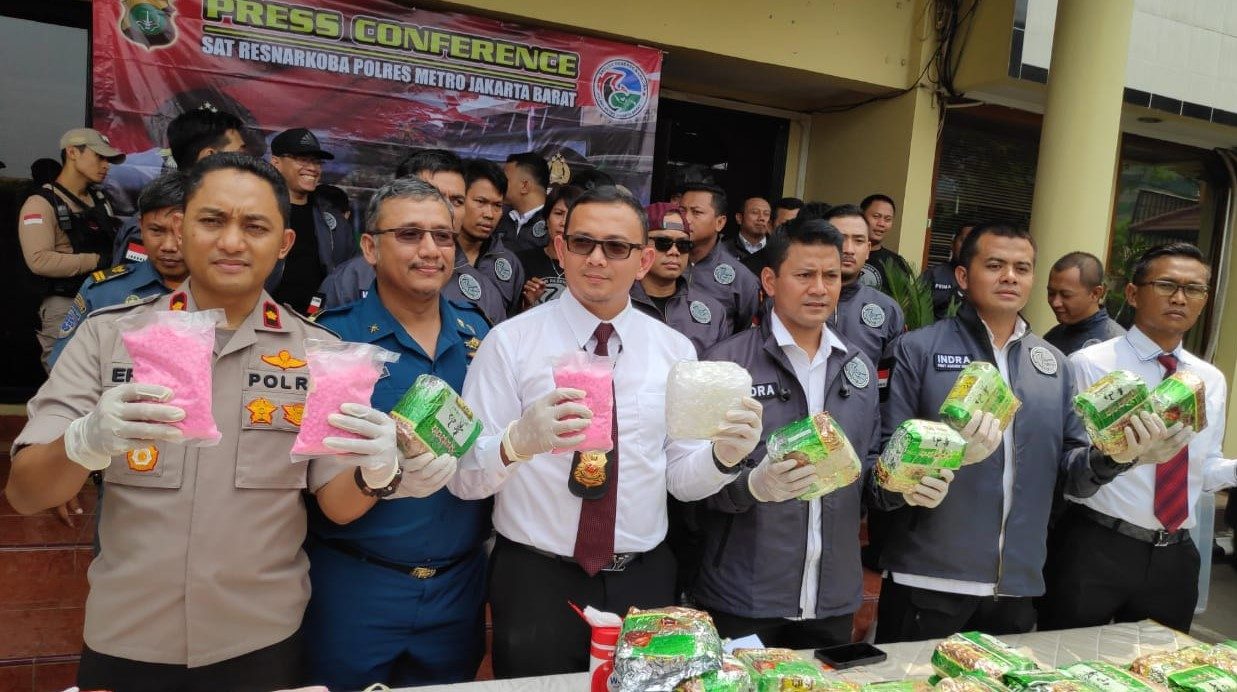 Kepala Satuan Narkoba Polres Metro Jakarta Barat AKBP Erick Frederick, saat press conference menjelaskan, selain mengamankan para tersangka, pihaknya juga mengamankan barang bukti sebanyak 2 buah karung yang berisikan 44 paket bungkus warna hijau berisikan narkotika jenis shabu sebanyak 44 gram.