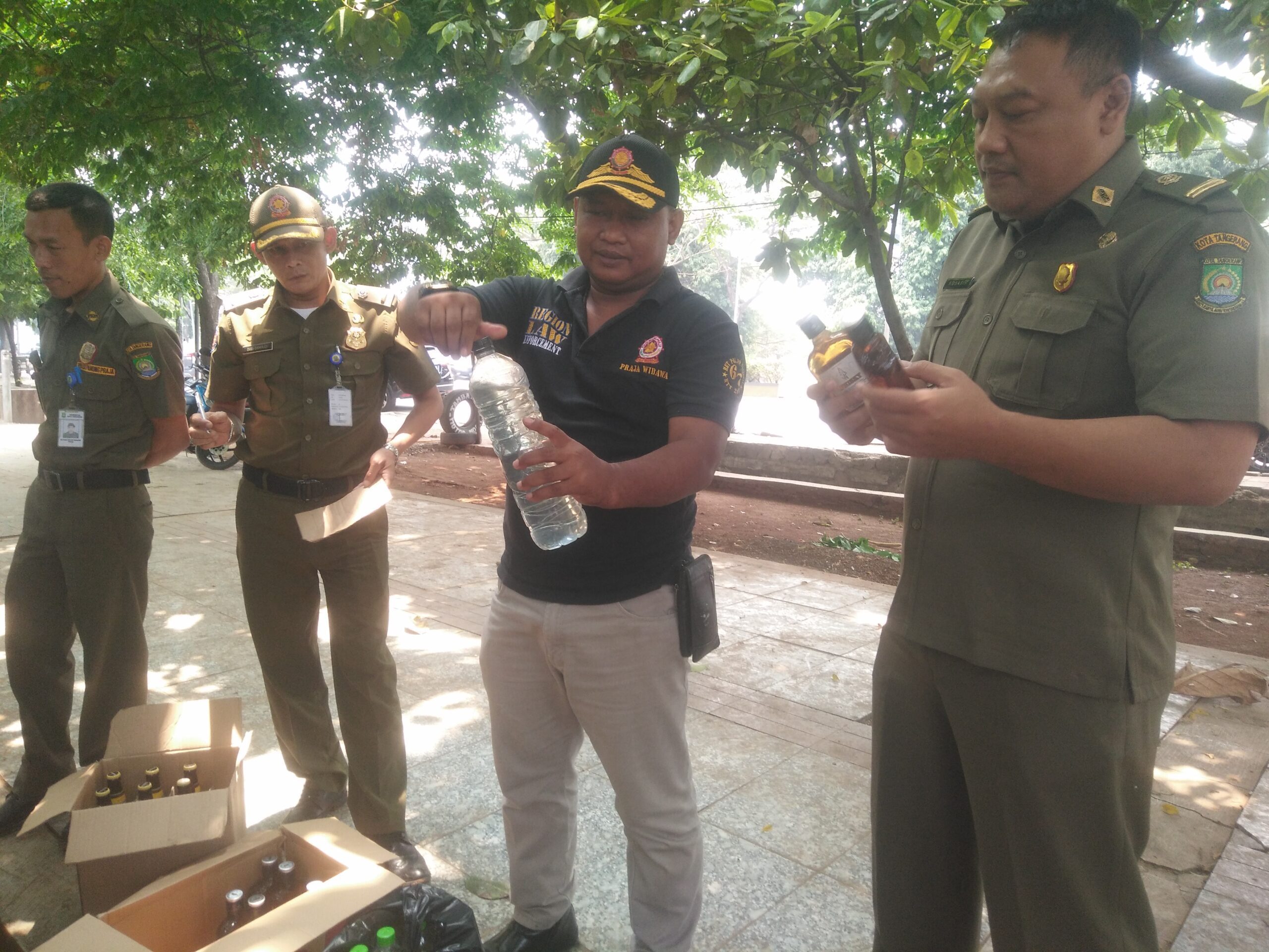 NASIONALNEWS.ID, KOTA TANGERANG – Satuan Polisi Pamong Praja Kota Tangerang (Satpol PP) melalui bidang Penegakan Produk Hukum Daerah (Gakumda) mengamankan 70 botol minuman keras (miras) beragam jenis, Kamis (25/10/18). Minuman beralkohol tersebut didapat saat jajaran anggota Satpol PP saat melaksanakan penegakan Peraturan Daerah (Perda) nomor 7 Tahun 2005 tentang pelarangan pengedaran dan penjualan minuman beralkohol.