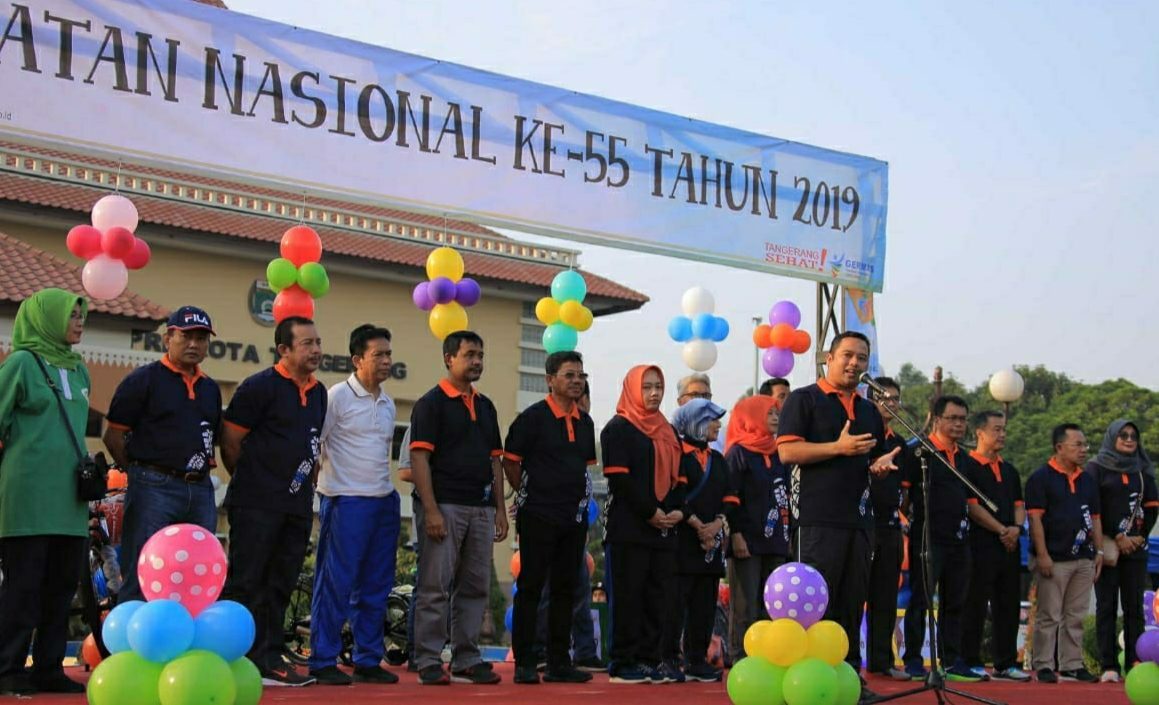 Walikota Tangerang, H Arief R Wismansyah hadir bersama Wakil Walikota Tangerang, H Sachrudin didampingi Kepala Dinas Kesehatan dr Liza Puspita Dewi. Walikota secara langsung membuka dan melepas para peserta Bugar Run 2019.