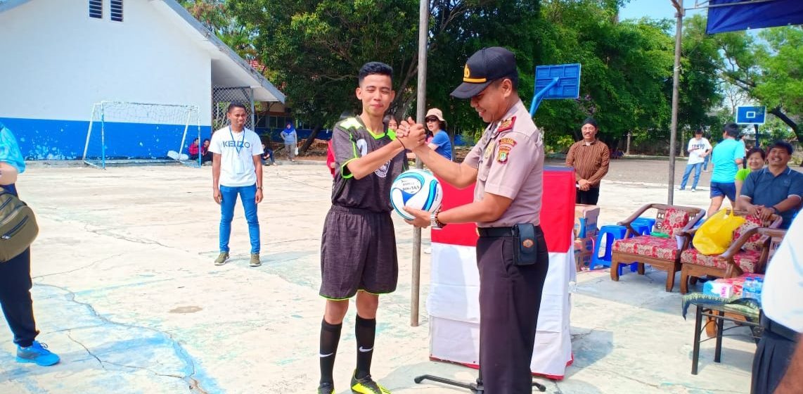 Dalam kesempatan itu Kanit Binmas Polsek Cengkareng memberikan peralatan olah raga berupa bola kaki. (BB)