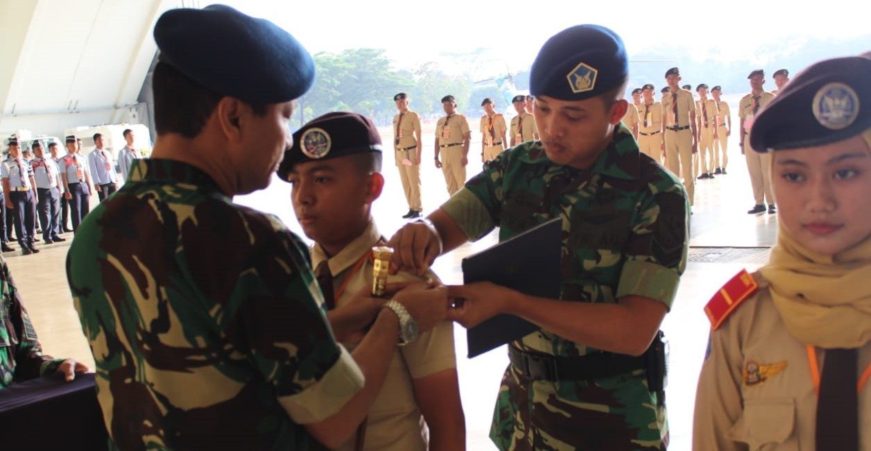 NASIONALNEWS.ID. JAKARTA – Komandan Lanud (Danlanud) Halim Perdanakusuma, Marsma TNI M Tonny Harjono, membuka Latihan Dasar Kepemimpinan Peserta Didik (LDKPD) SMK Angkasa, yang ditandai upacara di Hanggar Skadron Udara 45, Rabu (24/10/18).