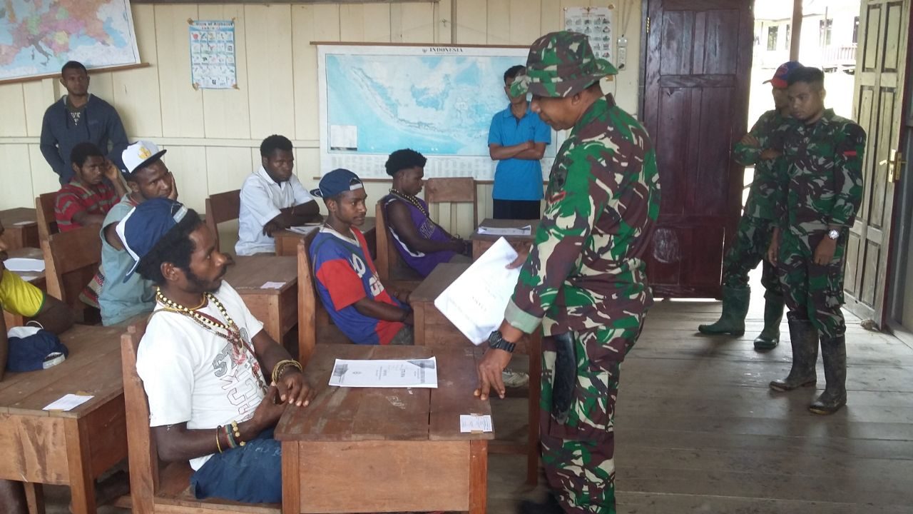 NASIONALNEWS.ID, TIMIKA – Babinsa Koramil 1710-05/Jila Serda Matios Tanlima mengajar di salah satu Sekolah Dasar (SD) yang berada di Kampung Jila, Distrik Jila, Kabupaten Mimika, Senin (12/11/2018). Bersama anggota Pos Pam Rahwan 754/Kostrad, Serda Matios mengabdi kepada Ibu Pertiwi, sebagai Guru Pembantu