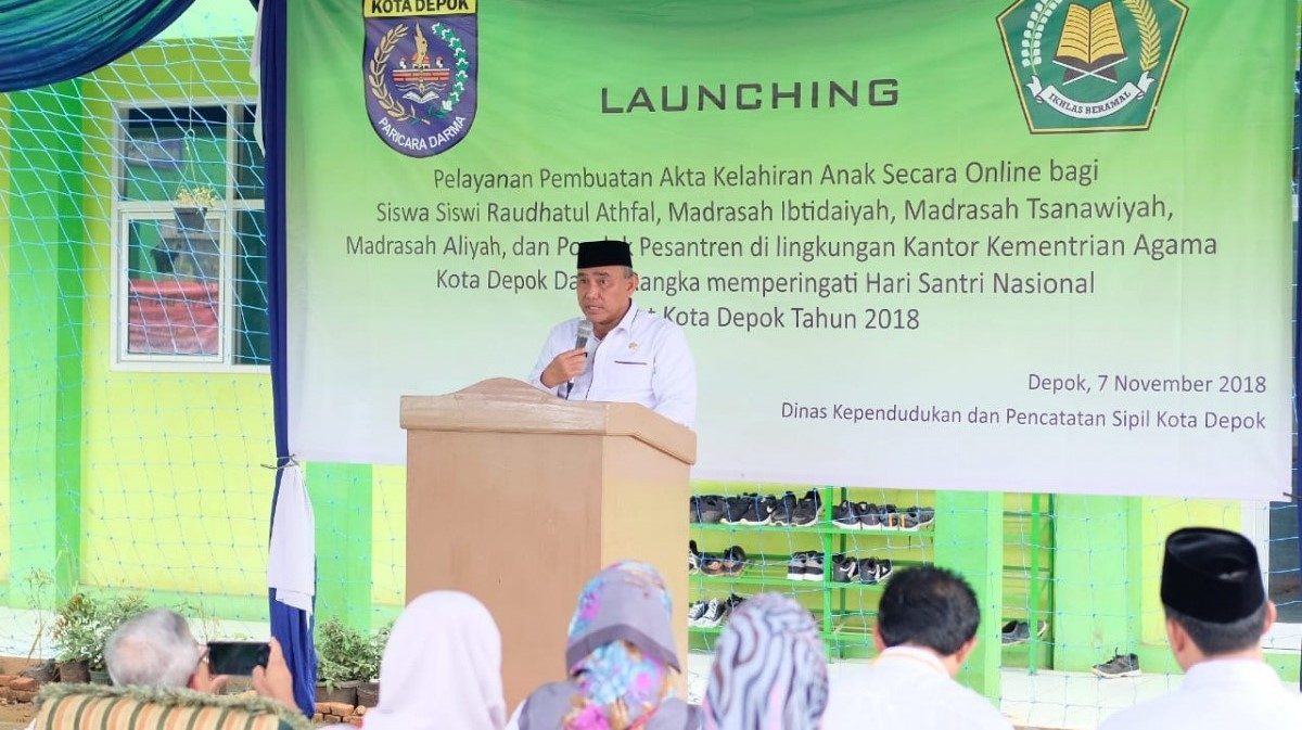 NASIONALNEWS.ID, DEPOK – Guna meningkatkan kepemilikan akta kelahiran anak usia 0-18 tahun, Dinas Kependudukan dan Pencatatan Sipil (Disdukcapil) Kota Depok, kembali menggelar pelayanan One Day Service atau pelayanan satu hari pembuatan akta kelahiran. Kali ini, Disdukcapil membuka layanan di Madrasah Tsanawiyah (MTs) Negeri Kota Depok, Senin (7/11/2018).