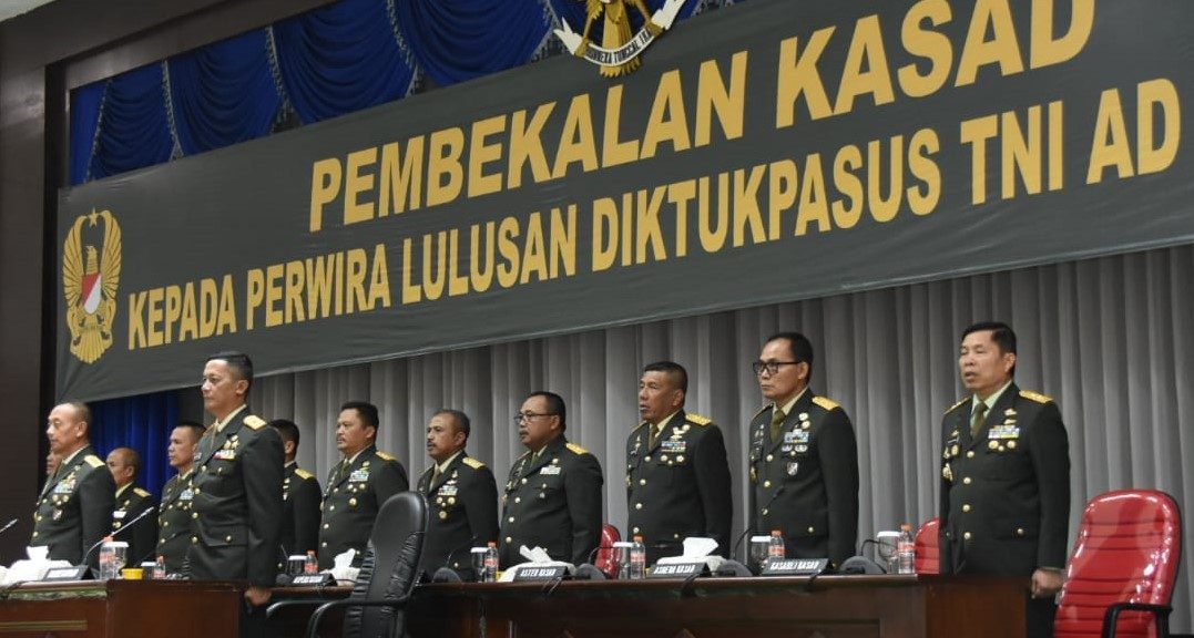 Hal itu disampaikan Kasad Jenderal TNI Mulyono, dalam pembekalannya kepada 406 Perwira Abituren Pendidikan Pembentukan Perwira khusus (Diktukpasus) TNI AD, di Gedung Sudirman, Secapa AD, Bandung, Jumat (23/11/2018).