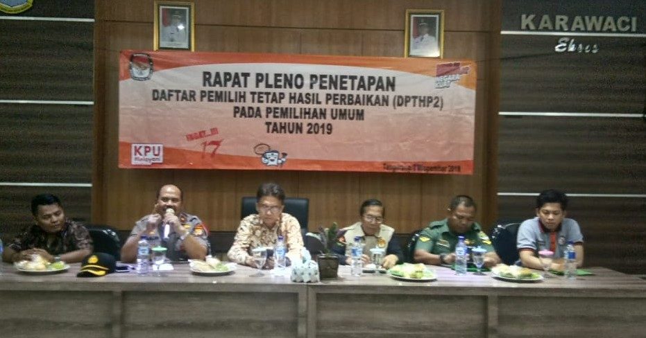“Sidang pleno ini dalam rangka menetapkan DPTHP2 Pemilu 2019, terima kasih kepada PPS yang masih semangat dalam melaksanakan tugas di Pemilu 2019 ini, meskipun tugas ini sangat berat. Perlu saya sampaikan bahwa dari 16 PPS se-Kecamatan Karawaci, terdapat 2 anggota PPS dari Kelurahan Margasari mengundurkan diri dan agar pihak Kecamatan segera memberikan solusinya,” kata H Nasution.