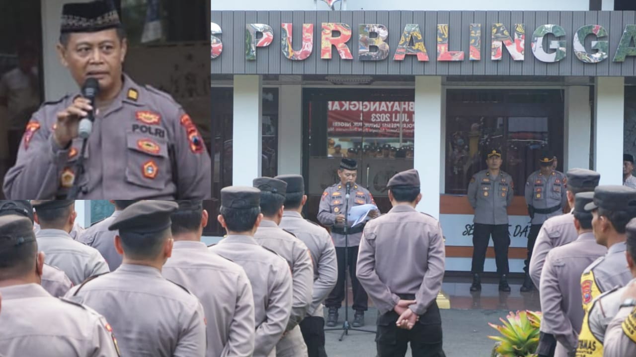 NASIONALNEWS.ID,PURBALINGGA-Polres gelar apel gabungan TNI/POLRI pengamanan giat Haul 100 tahun Syekh Nahrowi Al Banyumasi dalam rangka Hari Bhayangkara ke 77 bersama Maulana Habib Lutfi bin Yahya di halaman Polres Purbalingga yang dipimpin oleh Kabag Ops AKP Tri Aryo Irianto, S.Sos., M.Si.