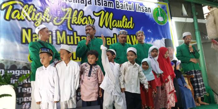 Maulid Nabi digelar di halaman Masjid Baitul Ihsan, jalan Angke Barat RT 012. RW 001 Kelurahan Angke, Kecamatan Tambora, Jakarta Barat, Jumat (29/11/2019) malam.