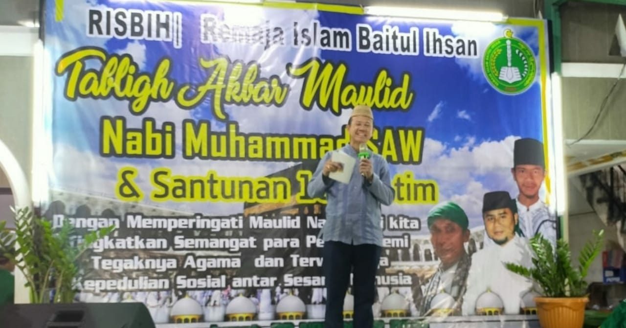 NASIONALNEWS.ID JAKARTA – Ratusan Jemaah menghadiri acara Maulid Nabi Muhammad SAW 1441 H yang diselenggarakan Ramaja Islam Baitul Ihsan (RISBIH). Dalam acara tersebut sekaligus memberikan santunan kepada 100 anak yatim piatu dan Dhuafa.